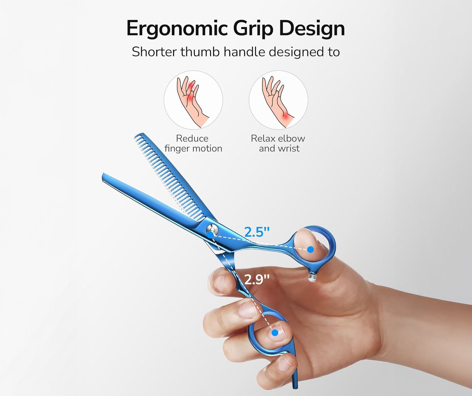 Smooth Thinning Performance (20–25% Rate) – The thinning shears with 30 finely cut teeth provide clean texturizing results, reducing bulk and creating natural layers — perfect for both men’s and women’s hairstyles.