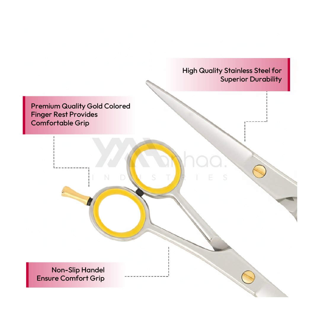 Crafted from durable high carbon stainless steel, these barber scissors feature ultra-sharp, hand-honed blades that glide smoothly through thick, thin, curly, or coarse hair. The silver finish with a gold accent screw gives it a sleek, modern look — all while resisting rust and wear.